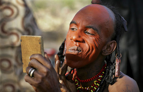 ويعتقد رجال القبيلة أنهم أجمل رجال العالم ولذلك كثيرا ما تراهم جالسين حاملين المرآة للتأمل في جمالهم وتزيين أنفسهم. كما يعتقدون أن العيون اللامعة والأسنان البيضاء والأنف الحاد هي من علامات الجمال ولذلك يستخدم الرجال مساحيق التجميل لإبرازه مفاتنهم.