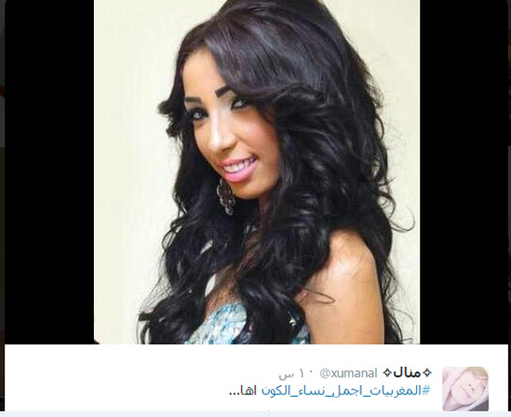 وجاء هاشتاج المغربيات اجمل نساء ضمن قائمة الموضوعات التي كانت الأكثر تداولًا عبر الموقع. وقد تغزل مستخدمو "تويتر"، بجمال نساء المغرب، ونشروا صورًا رائعة لعدد من الفتيات المغربيات بينهن عارضات أزياء، لابراز سحرهن والتعبير عن فخرهم بكون هؤلاء الجميلات ينتمين إلى الوطن العربي.