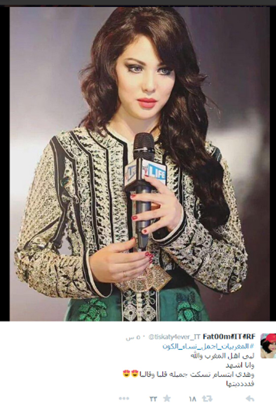 من المعروف عن المرأة المغربية انها جميلة جدا. وقد تحدث العديد من وسائل الاعلام العالمية عن جمال نساء المغرب الساحر وقام بنشر صور جميلات المغرب المتميزات. وتم اليوم تدشين هاشتاج جديد بعنوان "المغربيات اجمل نساء الكون" في موقع التواصل الاجتماعى "تويتر"، وقد تفاعل معه الكثير من المغردين.
