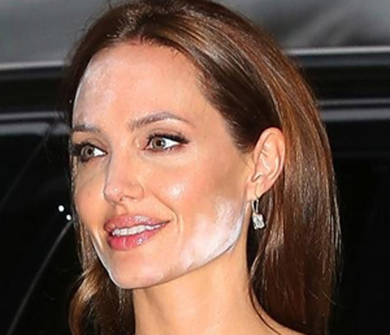 هي الجميلة التي تتبع الكاميرات إطلالاتها دائمًا، لكنها ظهرت إثناء حضورها حفل افتتاح مسلسل زوجها براد بيت، The Normal Heart، العام الماضي بإطلالة غريبة للغاية. غطت البودرة معظم أجزاء وجهها، وبدت كمجموعة من اللطخات البيضاء على الوجه، وجعلتها أضواء الكاميرا تتحول إلى ما يشبه الشبح.