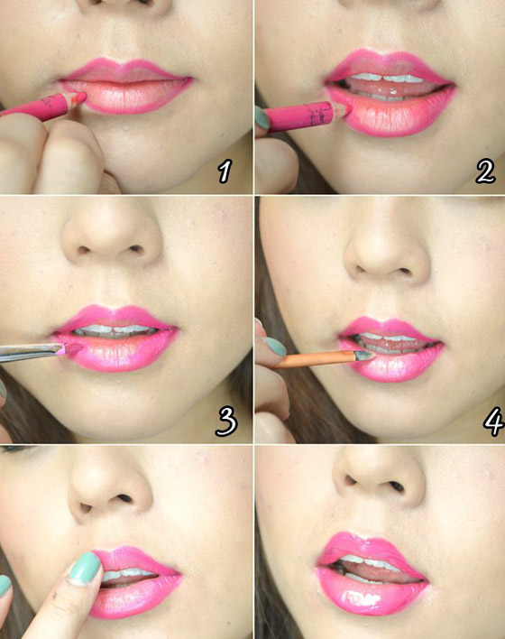 - أخيراً، قومي بمزج شفاهك جيّداً لتحصلي على موضة أومبري الشفاه.