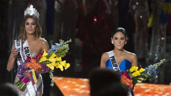 ارتكب الكوميدي الأميركي المخضرم، ستيف هارفي، ما قد يكون أكبر خطأ محرج في مشواره المهني، خلال تقديمه حفل ملكة جمال الكون مساء الأحد، عندما أخطأ في اسم الفائزة، وهي ملكة جمال الفلبين، وتوج منافستها ملكة جمال كولومبيا، قبل أن يعود ويطلب منها التنازل عن التاج. وانحصر اللقب في نهاية المنافسة بين ملكة جمال الفلبين بيا وورزباش، وملكة جمال كولومبيا آريادنا غوتيريس. وبينما انتظرت الاثنتان إعلان النتيجة بفارغ الصبر، استلم هارفي المغلف الذي يحمل النتيجة مهنئا ملكة جمال كولومبيا بالفوز.