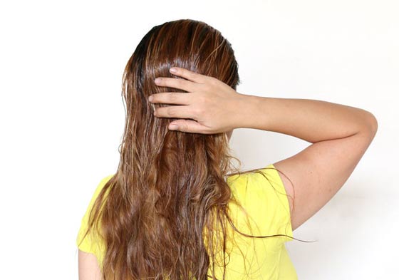 4- قومي بتدليك فروة رأسك بلطف باستخدام زيت اللوز ثم غطي رأسك بمنشفة دافئة و اتركيها عليه لمدة خمس عشرة دقيقة و تأكدي من أن المنشفة لن تبرد و بعد ذلك قومي بغسل رأسك مع شامبو خفيف و استمري في اتباع هذه الطريقة لبضعة أسابيع حتى تتحسن حالة شعرك.