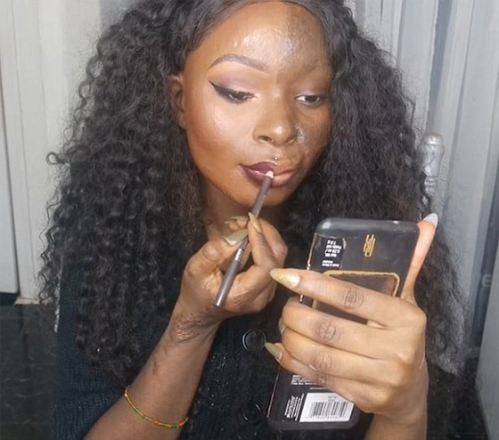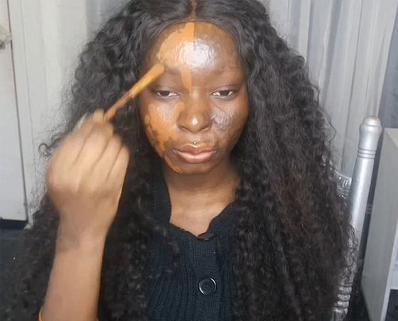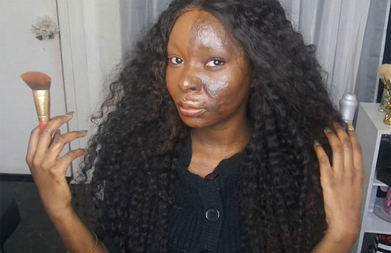 غطت فتاة تعانى من حروق بوجهها، الندوب التي بنصف وجهها باستخدام الماكياج لتثبت أنها لا تحتاج تغطية وجهها بالكامل للشعور بالثقة في النفس فهى تحب كلا الجانبين على حدة. وتعرضت "شالوم نخوم" 20 عاما من ولاية "ماريلاند" للحرق بالزيت في وجهها ورقبتها وكتفيها، في سن التاسعة، وبدأت باستخدام الماكياج لتغطية الندوب في مرحلة المراهقة.