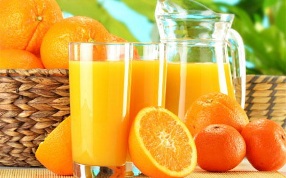 - عصير البرتقال، وهو يحتوي على فيتامينات تساعد على تجديد خلايا الجلد وإكساب البشرة النعومة والنضارة. ويحتوي عصير البرتقال على كمية عالية من معدن المغنيزيوم الذي يعيد ضغط الدم الى مستواه الطبيعي من دون عوارض جانبية. كما توجد في العصير أحماض عضوية تعتبر فاعلة في الوقاية من السرطان. ويمتاز العصير باحتوائه على كمية وفيرة من مادة هيسبيريدين التي تحمي من الأزمات القلبية.
