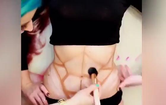 نشرت فنانة المكياج "ماري" مقطع فيديو تعرض خلاله طريقة الحصول على عضلات البطن باستخدام المكياج، وذلك عبر قناتها على موقع "يوتيوب". وفقا لما نشرته صحيفة بريطانية، تحلم الفتيات بالحصول على بطن مقسم بالعضلات كعارضات الأزياء، وهو ما طرحته فنانة المكياج ماري من خلال رسم شبكة تشبه شباك العنكبوت على البطن ودمج خطوطها بالفرشاة مع وضع مثبت المكياج.
