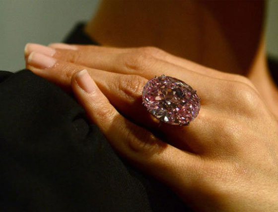 هذه الماسة البيضاوية الوردية التي تزن 59.6 قيراطاً والمعروفة باسم "النجمة الوردية" بيعت بـ80 مليون دولار في العام 2013 في مزاد سوثبي، ولكن بعد تخلف المشتري عن الدفع، عادت إلى دار سوثبي للمزادات.