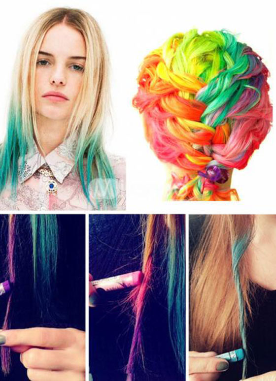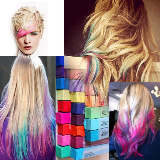 انتشرت مؤخرًا تلك الصيحة الرائجة لتلوين الشعر باستخدام ألوان الطباشير التي تمنحك لونا مؤقت لشعرك. إن كنتِ ترغبين في حقًا في تجربة تلك الألوان الجريئة مع شعرك، جربي استخدام ألوان طباشير الشعر، فهي وسيلة سريعة وغير مكلفة. تتوافر الآن درجات مختلفة من ألوان طباشير الشعر العصرية والمرحة، والتي تضفي المزيد من الجاذبية على إطلالتك.