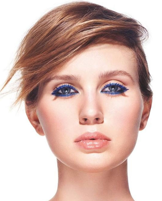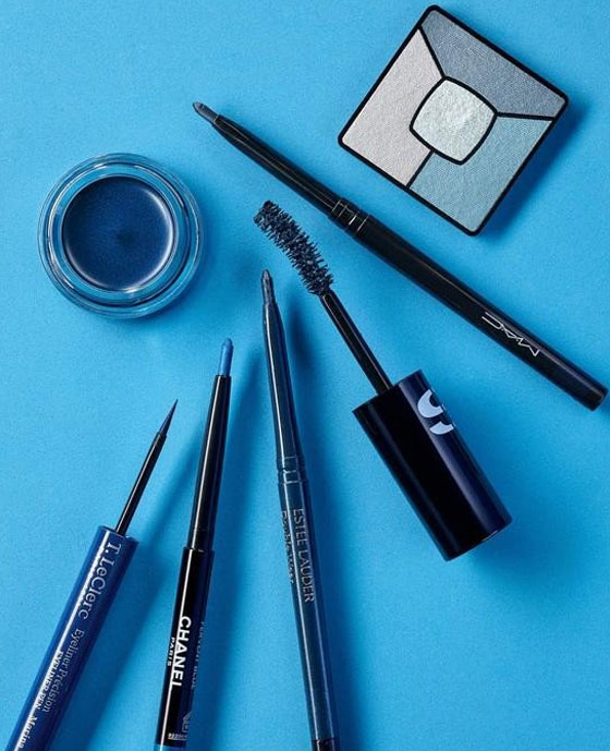 مكياج عيون أزرق: يعتبر اللون الأزرق من أكثر الألوان المناسبة للموضة في هذا الفصل، لا سيما بهذه الدرجة الداكنة. ننصحك بتطبيقها على شكل إطار حول الجفنين العلوي والسفلي للعين مع الماسكرا السوداء.