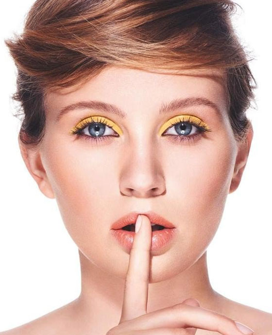 مكياج عيون أصفر: هذا اللون ننصحك بتطبيقه على شكل ظلال على الجفن المتحرك، مع القليل من الماسكرا السوداء والكحل الأسود في داخل الجفن السفلي.