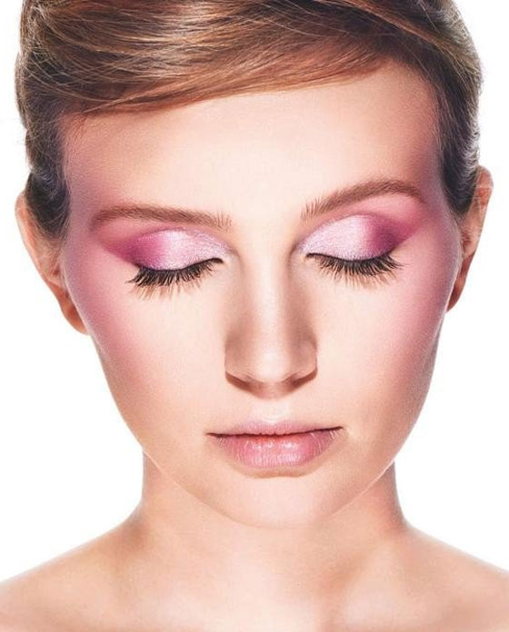 مكياج عيون الزهري: يصلح اللون الزهري لأن يستخدم على شكل ظلال كثيف بتموّجات مختلفة، ليشكل أومبريه مميّزاً يسحب العين عند الجفن العلوي.
