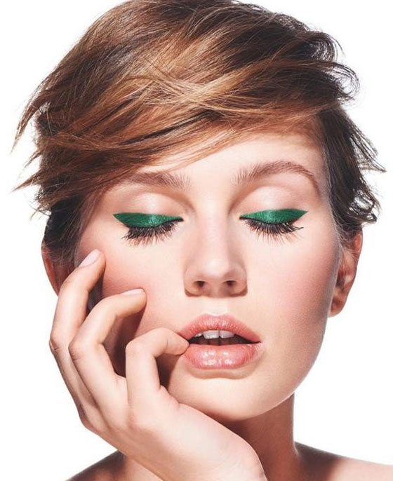 مكياج عيون أخضر: ننصحك بتطبيق اللون الأخضر الداكن على شكل أيلاينر مجنح على الجفن العلوي.