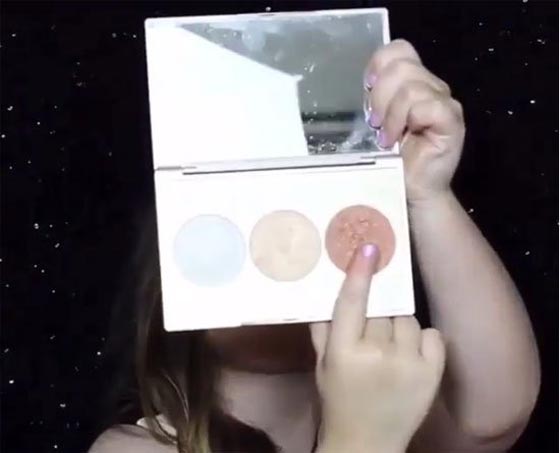 وقد بدأت بوضع كريم الأساس و"البودرة" ثم اختيارها للون احمر الخدود الـblusher المناسب لبشرتها وظلال العيون الـ eye shadow وقامت بلصق الرموش الصناعية ووضع الماسكارا، وصولاً لمرحلة وضع أحمر الشفاه.