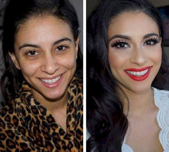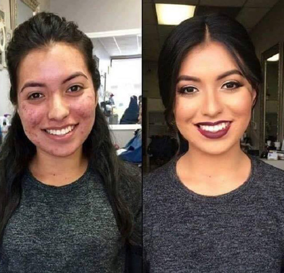 نشر موقع التواصل الاجتماعي "فيس بوك"، مجموعة من الصور تعرض الفروقات بين الوجه الطبيعي وعقب إضافة المكياج إليه، وأكدت الصور أن أدوات التجميل من شأنها تحويل النساء الأقل في الجمال الشكلي والخارجي إلى نساء يملكن الجمال الفائق.