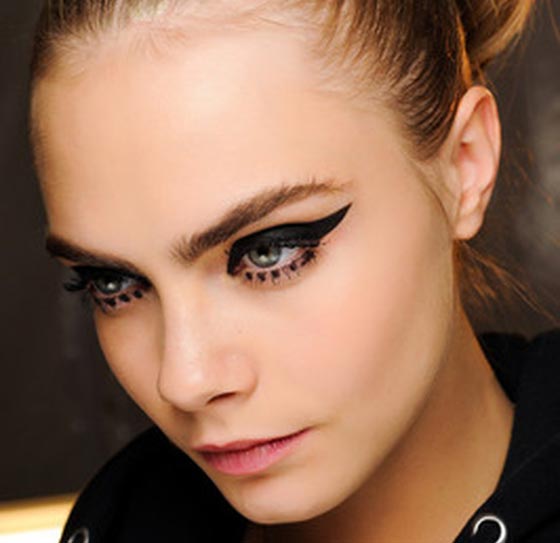 2- الآيلاينر المكثف: وهي الرسمة التي تضفى على عيونك المزيد من السحر والجاذبية، وهو مناسب تمامًا للمناسبات والسهرات. ما عليكِ سوا تطبيق خط كثيف جدًا من الآيلاينر فوق جفنك العلوي لينتهي بشكل مجنح، وأسفل العين، قومي بتحديد عيونك مع خط كثيف ينتهي ايضًا بشكل مجنح بنهاية خط الجفن العلوي.