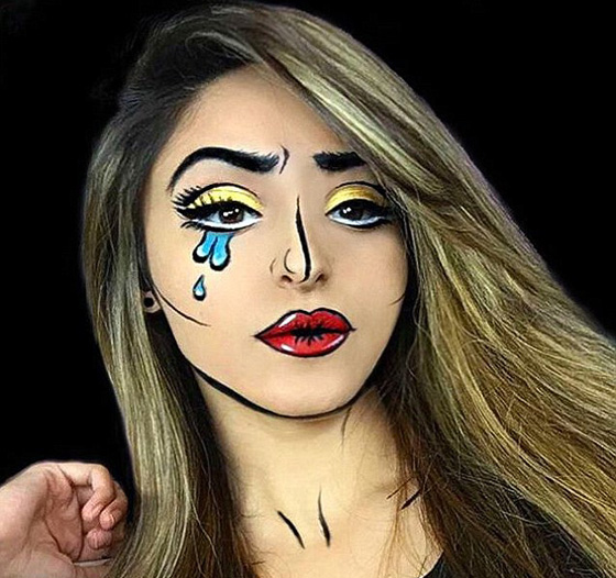 يستخدم الكثير من فناني المكياج موهبتهم في تحويل وجوههم إلى شخصيات خيالية من شخصياتهم المفضلة. ونجح عشاق الكتب الهزلية من الفنانين، وفقا لما نشرته صحيفة بريطانية، في جذب الكثير من المتابعين بالصور المرسومة على وجوههم، والتي تبرز الحاجبين مع بعض الدموع والعيون البارزة الملونة بمختلف الألوان. يستوحي البعض أيضا رسوماتهم من فن "البوب"، ليظهروا في شكل صورة اقتطعت من كتاب خيالي.