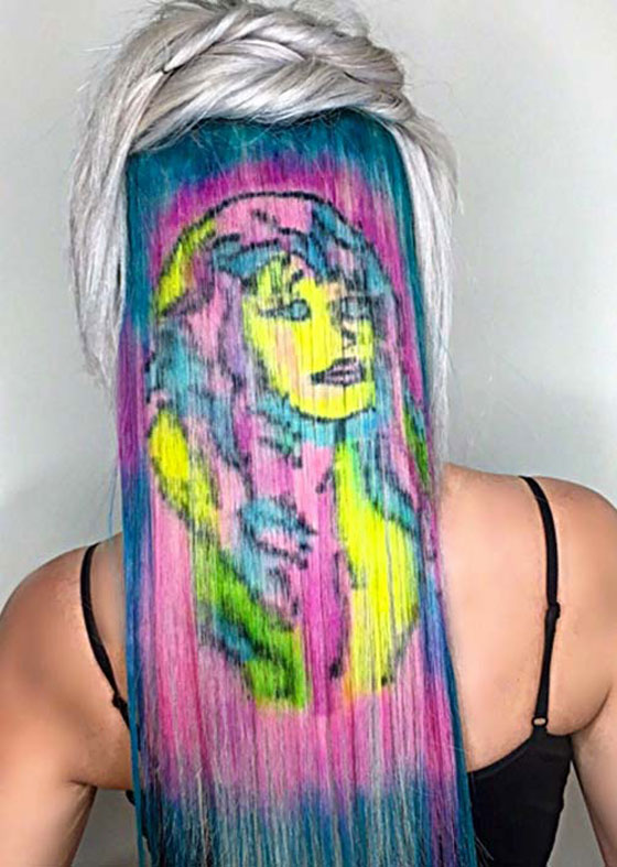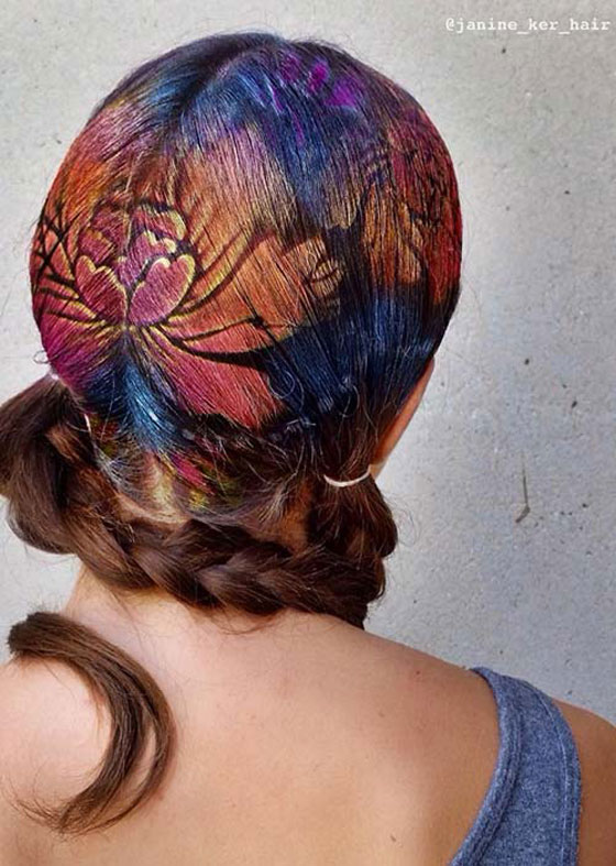 اقتحمت تقنية الـ"3D" الكثير من المجالات ابتداءا من الفيديو والصور ولغاية عالم ألوان الشعر وصبغاته، فقد قامت الكوافيرة "جانين كير" باستغلال خلفيتها الفنية، لتقوم برسم لوحات مدهشة على شعور زبوناتها باستعمال صبغات الشعر. وكانت النتيجة لوحات فنية لرائعة على الشعر بابتكار أشكال وتصاميم جديدة كما يظهر في مجموعة صور مذهلة مرفقة. شاهد الفيديو أيضا.