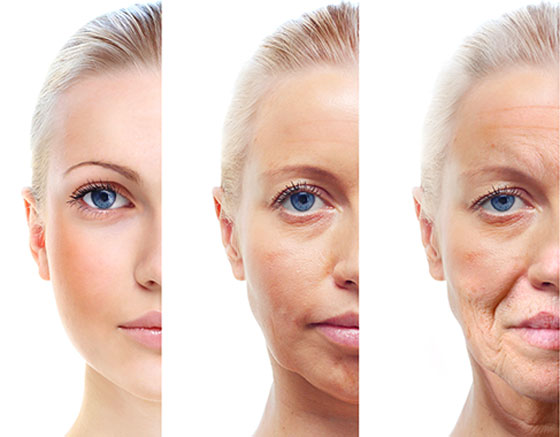 من أبرز أعراض شيخوخة البشرة ظهور التجاعيد أو الثنايا حول الفم وفي منطقة العينين عند الابتسام، أو الضحك أو التجهم، وما تلبث هذه التجاعيد أن تنتشر في بقية مناطق الوجه والرقبة، يلي هذه المرحلة جفاف البشرة، وفقدان ليونة الجلد وترهله.