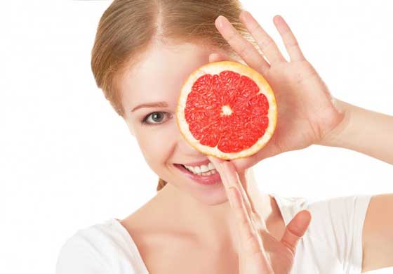 6- مكافحة آثار التلوث وأضرار الشمس: لاحتوائه على كمية كبيرة من المواد المضادة للأكسدة، يساعد الجريب فروت على مكافحة الأضرار الناجمة عن التلوث والتعرض لأشعة الشمس الضارة، لذا ينصح بتناوله كعصير أو استخدامه كقناع للبشرة بتمرير كمية منه على الوجه والرقبة يومياً.