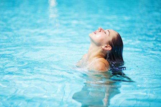 2- الكلور الموجود في برك السباحة: يتسبّب الكلور الذي يُضاف إلى برك السباحة بجفاف البشرة، كما أن "دشّ" المياه العذبة عند الخروج من بركة السباحة لا يتمتع بفعالية تامة في التخلّص من بقايا الكلور على البشرة. ولذلك يجب استبداله بغسل الجسم بصابون نسبة حموضته محايدة ثمّ ترطيب البشرة بحليب أو كريم مغذّي.