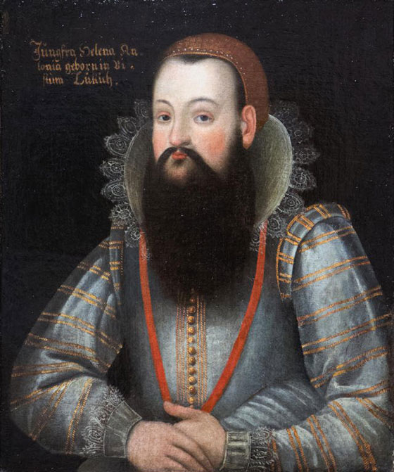 هيلانا أنتونيا: ولدت في القرن السادس عشر، وكانت هيلانا أنطونيا قزمة ملتحية وكانت قيّمة بما يكفي لرسم صورتها كعضو في المحكمة، واعتبرت امرأة كامله تمامًا وعضوة في المحكمة كما أنها حصلت على دور أكثر جاذبية، كان من الواضح أنها كانت ترتدي الزي النسائي في ذلك الوقت، وتصويرها المعاصر للحيتها الكاملة السوداء.