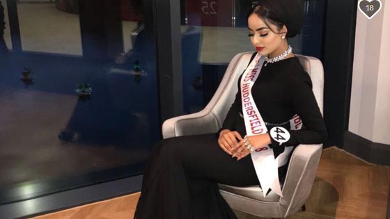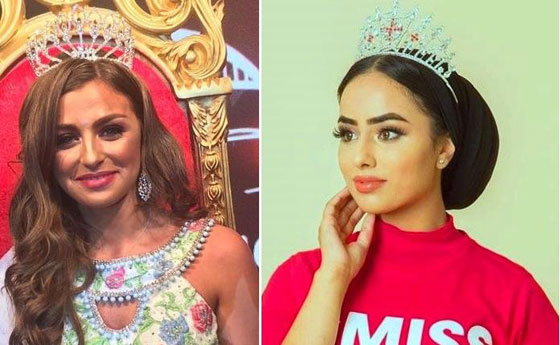 ماريا محمود (الى اليمين) شاركت أيضا كمحجبة بالمسابقة، والى اليسار الأفغانية الأصل حمّاسة كوهيستاني، أول مسلمة تفوز بمسابقة ملكة جمال انجلترا، لكنها كانت غير محجبة، ولا تزال