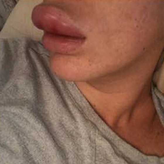 ونقلت هيئة الإذاعة البريطانية عن كنابيير، قولها إنها لدى عودتها إلى المنزل شعرت بتوعك، واستيقظت في وقت لاحق من الليل دون أن تشعر بشفتيها. وقالت: "لم أر شفتاي بهذا الحجم من قبل". وأصيبت السيدة التي تبلغ من العمر 29 عاما، بحالة من الذعر جعلتها لا تغادر منزلها لمدة 7 أيام، فيما لم تفلح مضادات الحساسية أو كمادات الثلج في تخفيف التورم. وهرعت السيدة إلى عيادة استشارية في لندن، حيث خضعت لعملية لإزالة حشوات البوتوكس.