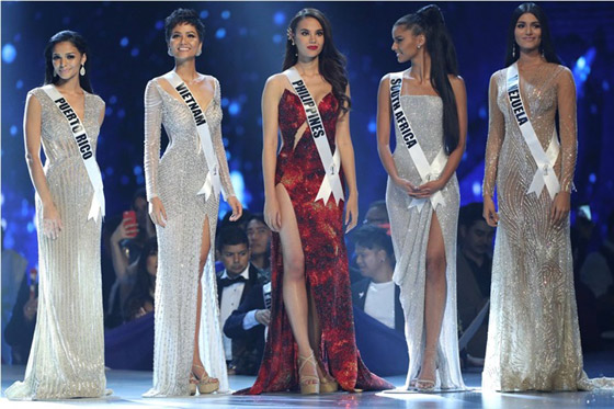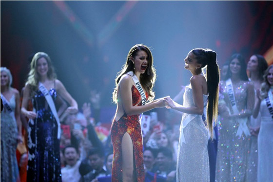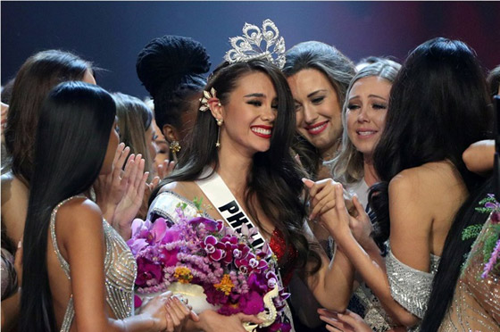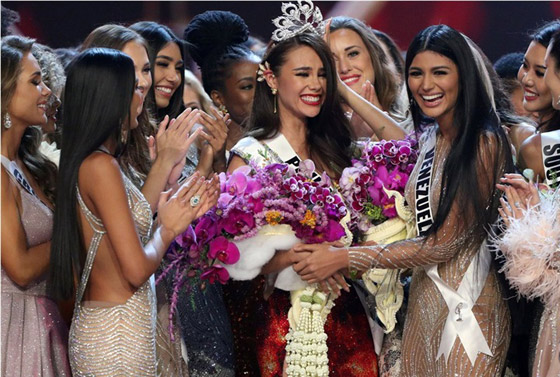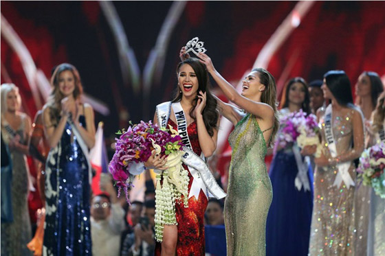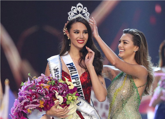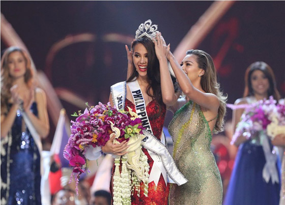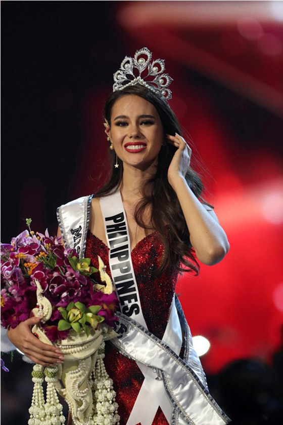 فازت الفلبينية كاتريونا جراي بلقب ملكة جمال الكون يوم الإثنين لتصبح رابع مرة تفوز فيها الفلبين بهذه المسابقة الدولية. وفازت العارضة "جراي" الفلبينية الاسترالية التي يبلغ عمرها 24 عاما باللقب في العاصمة التايلاندية بانكوك، حيث ضمت المسابقة لأول مرة متسابقة من المتحولين. وقالت جراي التي كانت ترتدي ثوبا باللونين الأحمر والبرتقالي مستوحى من بركان ثار هذا العام "قلبي مليء بقدر كبير من الامتنان. كانت هناك لحظات من الشك شعرت فيها بالارتباك وشعرت بالضغط". وسئلت جراي خلال المسابقة عن رأيها في إضفاء الشرعية على تعاطي الماريجوانا فقالت إنها تؤيد ذلك لأغراض طبية.