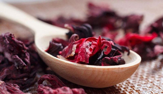 4- الكركديه: ضعي في الخلاط الكهربائي حفنة من أوراق الكركديه مع حفنة مماثلة من أوراق الكاري، واطحنيها جيداً. أضيفي إلى الأوراق المطحونة القليل من الماء حتى تتكوّن لديك عجينة طريّة. يمكنكِ أن تضيفي إلى الخلطة بعض قطرات من زيت جوز الهند. استخدمي العجينة كقناع على شعرك واتركيها لمدة نصف ساعة قبل أن تغسلي الشعر بالشامبو ذات التركيبة الناعمة. يمكنكِ اعتماد هذه الوصفة مرةً أو اثنتين أسبوعيّاً.