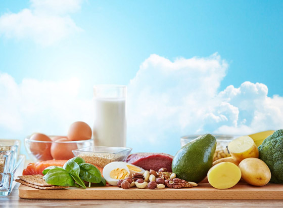 تشكل جودة النظام الغذائي معيارا مهما في الحماية من ظهور ملامح وجه أكبر سنا مما هو عليه الشخص بالفعل. تشير الأكاديمية الأميركية للأمراض الجلدية إلى "أن تناول الكثير من الفواكه والخضراوات الطازجة ربما يساعد في منع الضرر الذي يؤدي إلى شيخوخة الجلد المبكرة. وتشير نتائج الدراسات العلمية إلى أن اتباع نظام غذائي يحتوي على الكثير من السكر أو غيرها من الكربوهيدرات المكررة يمكن أن يسرع من الشيخوخة".