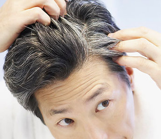 1- عدم الاهتمام بالتغذية السليمة: نقص الميلانين هو المسبب الرئيس لظهور الشعر الأبيض، لذلك ينصح بتناول الأطعمة التي تساعد على زيادة نسبة الميلانين بالجسم، مثل السلمون والحبوب الكاملة والجزر والخضروات. ويؤدي نقص فيتامين "د" بالجسم إلى ظهور الشعر الأبيض، ويمكن الحصول عليه من خلال عليه من خلال التعرض للشمس، وتناول بعض الأطعمة مثل السلمون والسردين، التونة، المحار، صفار البيض، وعيش الغراب. كما تسبب الأطعمة الدسمة خللا في هرمونات الجسم، والتي لها دور كبير في تغير لون الشعر.