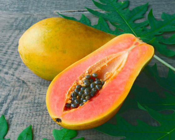 1- البابايا: قال الدكتور بزره: "الكولاجين هو البروتين الأكثر وفرة في الجسم، إنه ليس أحد لبنات بناء الشعر الجديد فحسب، بل يساعد أيضا في الحفاظ على الأدمة- الطبقة الوسطى من بشرتك التي تحتوي على جذر كل شعرة فردية قوية وصحية". وأوضح بزره أن جسم الإنسان ينتج الكولاجين عن طريق الجمع بين بعض الأحماض الأمينية، التي توجد عادة في الأطعمة، مثل اللحم البقري والدجاج والسمك والفاصوليا والبيض ومنتجات الألبان. ولكن هذه العملية تتطلب أيضا توفر فيتامين С كمكون رئيس. وتتميز فاكهة البابايا بأنها غنية بهذا الفيتامين، كما أنها وفيرة البوتاسيوم الذي يرتبط نقصه بفقدان الشعر.