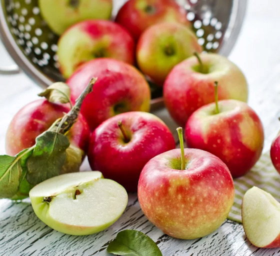 5- التفاح: يعد التفاح غنيا بالفيتامينات الضرورية للحفاظ على فروة رأس صحية ومنع قشرة الرأس. كما أنه غني بمضادات الأكسدة لإبعاد الجذور الحرة، والمساعدة على تجديد الخلايا.