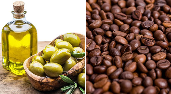 4. ماسك القهوة وزيت الزيتون: أخلطي ملعقة صغيرة من القهوة مع ملعقة كبيرة من زيت الزيتون الطبيعي. حركي الخليط الى أن يصبح متجانساً، من ثم طبقيه على بشرة وجهك بحركات دائرية من الأسفل الى الأعلى. اتركي الخليط على وجهك مدة ربع ساعة، بعدها نظفي وجهك ورطبيه بكريم الترطيب خاصتك.