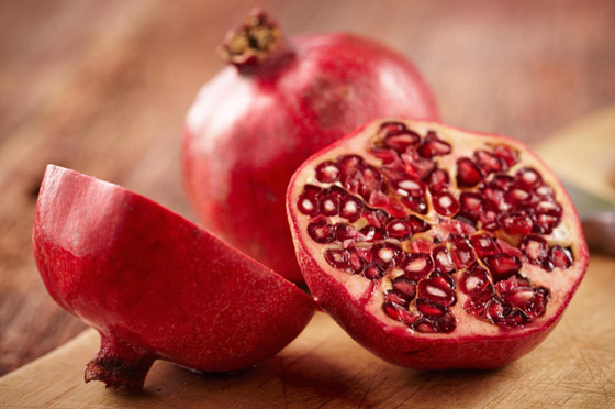 19- الرمان: يتمتع الرمان بالخصائص نفسها التي تتمتع بها الفاكهة الحمراء، فهو مضاد مثالي للأكسدة كما أنه يرطب البشرات الجافة، يخفف من ظهور حب الشباب، ويحمي من أشعة الشمس.