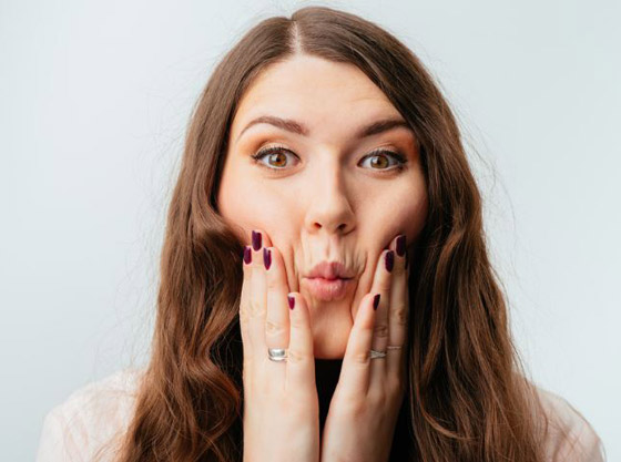 3. تمرين التدليك: قومي برفع خديكِ بيدك حتى يلامس الجفن السفلي للعين ودلّكيهما بحركة دائرية، كرري هذا التمرين لمدة خمس ثوانٍ، وأهمية هذا التمرين هي شد عضلات الوجه وخاصةً الخدين وتنشيط الدورة الدموية.