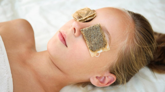 - توضع اكياس الشاي المر بعد تبريدها على العين لإزالة السواد والانتفاخ الموجود تحت العين.