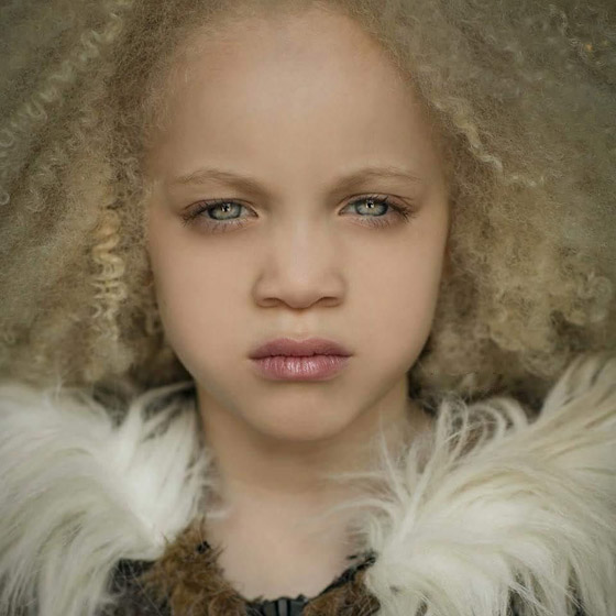 4. آفا كلارك ألبينو: وهي أمريكية من أصل أفريقي، وتتميز بشعرها الأشقر وعينيها الخضراوين المزرقتين وشفتيها الورديتين، غزت هذه الفتاة عالم الموضة. فقد ظهرت صور هذه المرأة المعجزة بالفعل، على صفحات مجلات الموضة الشهيرة، ووفقًا لتشخيصات الأطباء. كان من المفترض أن تكون الشابة قد أصيبت بالعمى الآن، ولكن بفضل جهود والديها، فإنها تقرأ وتلعب البالية، وقد تمكنت حتى من جذب انتباه المصورين البارزين.