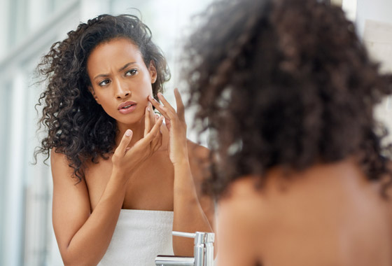 2- ضبط العوامل المتعلقة بنمط الحياة: مثل النظام الغذائي والصحة النفسية والسيطرة على التوتر والإجهاد تتأثر البشرة كثيراً بتلك العوامل. بغض النظر عما إذا كنتم تعانون من حَب الشباب أو الوردية أو التهاب الجلد التماسي، ينبغي لكم معرفة أن صحة البشرة تبدأ من داخل الجسم، وسوف تستفيدون من تقييم مدى تأثير مستويات التوتر أو العادات الغذائية على بشرتكم.