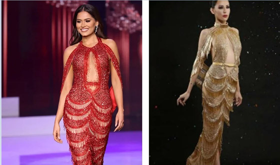 الفستان الذي ارتدته من نافستها الأسبوع الماضي 76 مرشحة على لقب ملكة جمال الكون، وكان على جسمها حين خرجت وحدها بالتاج على رأسها، وهي المكسيكية Andrea Meza البالغة 26 سنة، ليس تماما من إبداع مواطنها Ivis Lenin بحسب ما قالت في الحفل الذي أحيوه السبت الماضي في فندق Hard Rock Hotel بولاية فلوريدا "بل مسروق من فستان" صممه مكسيكي آخر، وهو لبناني الأصل اسمه نديم سوديحة، الشهير باسم Nadim Olivera في المكسيك.