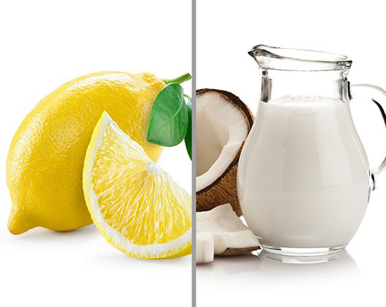 1- حليب جوز الهند وعصير الليمون: لتحضير هذه الخلطة لن تحتاجي سوى لمكوّنين فقط: 50 ملليلتراً من حليب جوز الهند وملعقة كبيرة من عصير الليمون. احتفظي بهذا الخليط لليلة كاملة في الثلاجة، على أن يتم تطبيقه على كامل الشعر من الجذور إلى الأطراف وتركه لمدة 30 دقيقة قبل غسله بشامبو ناعم خال من السولفات. يُنصح بتطبيق هذا القناع مرة أسبوعياً، إذ يساعد عصير الليمون على تمليس الشعر، أما حليب جوز الهند فيُنشّطه ويساهم في حل تشابكه مما يجعله ناعماً ومالساً منذ الاستعمال الأول.