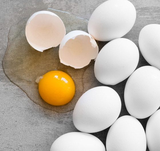 البيض هو مصدر جيد للبروتين ولكنه يحتوي على الكثير من المعادن التي تساعد على نمو الشعر، لذلك ينصح بتحضير بيضة وعصير ليمونة، ثم تحضير وعاء لخلط المكونات وسكب بياض البيض، ثم إضافة الليمون مع تقليب المزيج بالشوكة حتى يصبح رغويًا، ثم وضع المزيج على الرأس من الجذور حتى الأطراف، ثم تصفيف الشعر على هيئة كعكة، وتركه لمدة 15-20 دقيقة، ثم غسل الشعر بالماء، مع تكرار الوصفة مرة كل أسبوع.