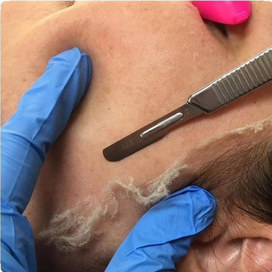 اتجاه حديث يتضمن كشط شفرة عبر الجلد للتقشير ولإزالة الشعر الرقيق لإضفاء لمسة نهائية ناعمة على الجلد على الفور. ومع ذلك، هناك حد أدنى من الأدلة العلمية التي تدعم تقنية الديرما بلانينج لأي فائدة للبشرة. كما أن الاستخدام المتكرر لهذا العلاج يمكن أن يكون له عواقب سلبية على حاجز الجلد، مما يجعل البشرة حساسة للأشعة فوق البنفسجية وتلف الجذور الحرة والإصابة بالالتهابات وفرط التصبغ التالي للالتهابات.