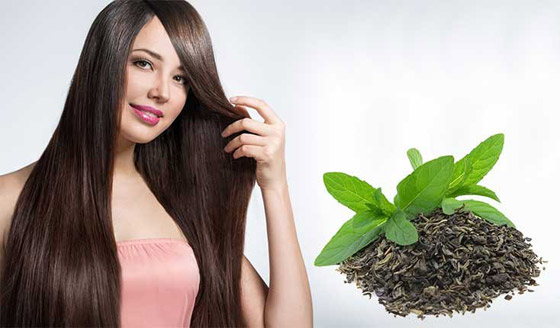 إلى فوائد الزنجبيل، للشاي الأخضر منافع لا تقل على تلك التي يمتلكها الزنجبيل للشعر، سواء من خلال تناوله أو تطبيقه موضعياً، إذ يحتوي على مركبات البوليفينول Polyphenol التي تمنع فقدان الشعر، خاصة لدى النساء، لأن هذه المركبات تخفف من حدة الإجهاد والتوتر اللذين يسببان تساقط الشعر عند النساء، كما يعمل الشاي الأخضر على تثبيط هرمون الديهدروتستوستيرون Dihydrotestosterone المحفز لتساقط الشعر وعدم نموه.