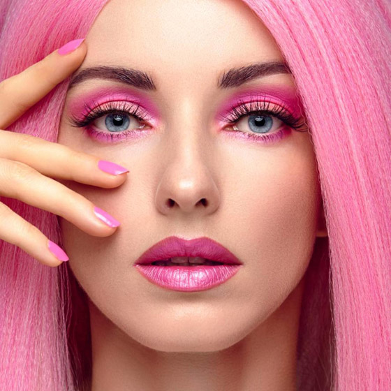 يجمع مكياج اللون الزهري بين النعومة والتأثير الملفت للأنظار، ويتميز بأنه يلائم صاحبات البشرة السمراء والفاتحة على حد سواء، كما أنه يمكن اعتماده للإطلالات النهارية أو المسائية.