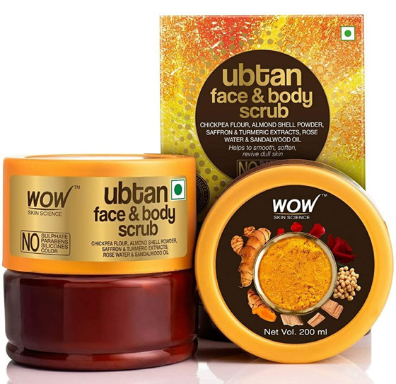 ينقي هذا المقشر البشرة، ويحتوي على خلاصة اللوز والكركم والزعفران وزيت خشب الصندل وماء الورد، ويساعد على تقشير طبقات الجلد الميت، ويمنح البشرة ملمساً ناعماً، ويساعد في إزالة الأوساخ العميقة من الجلد، فضلاً عن ذلك يحتوي على فيتامينات ومعادن، تساعد تجدد البشرة.