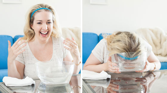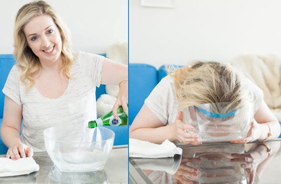 الطريقة الثانية تناسب البشرات الجافة والحسّاسة. وهي تقوم على استعمال المياه الغازية كما نستعمل التونر بحيث يتم تطبيقها على قطعة من القطن يُمسح الوجه بها.