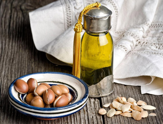 4- زيت الأركان لمفعول مضاد للتجاعيد: تنمو شجرة الأركان بشكل حصري في جنوب غرب المغرب، وتحتوي بذورها على حبيبات لوزيّة يتمّ عصرها للحصول على زيت تستعمله النساء المغربيّات على بشرة الوجه والجسم، وحتى الشعر. يتميّز هذا الزيت بغناه بالحوامض الدهنيّة وهو مثالي لتعزيز نعومة وحيويّة البشرة والشعر. وهو يُعرف أيضاً بغناه بالفيتامينات من فئة A وE بالإضافة إلى "الفيتوستيرول" مما يُعزّز مفعوله المُجدّد، الحامي، والمقوّي للبشرة والشعر. يدخل زيت الأركان في تركيبة العديد من مستحضرات العناية بالشعر والجلد، ويمكن استعماله بصيغته النقيّة كمصل أو كمزيل للماكياج.