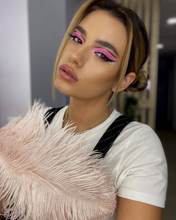 إذا كنتِ تبحثين عن جذب الأنظار إليكِ، فيمكنك تطبيق الآيلاينر المستقيم، عن طريق رسم خط مستقيم مُلون على الجفن العلوي للعين، وسيمنحكِ هذا لوك عصرياً وغير تقليدي.