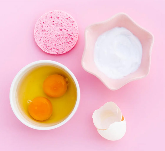 يتميّز هذا القناع بغناه بالبروتينات التي تغذّي البشرة وتملّس التجاعيد. لتحضيره تحتاجون إلى 3 مكونات فقط: مقدار فنجان من الزبادي، بياض حبتين من البيض، وملعقة كبيرة من العسل. ابدأوا بخفق بياض البيض قليلاً ثم أضيفوا إليه الزبادي والعسل قبل متابعة الخفق للحصول على مزيج متجانس. يتمّ وضع هذا القناع بطبقة سميكة على بشرة الوجه، والعنق، ومنطقة أعلى الصدر. ويُترك لمدة 15 دقيقة قبل شطفه جيداً ثم تطبيق كريم مرطب على البشرة. يُنصح باستعماله مرة أسبوعياً.